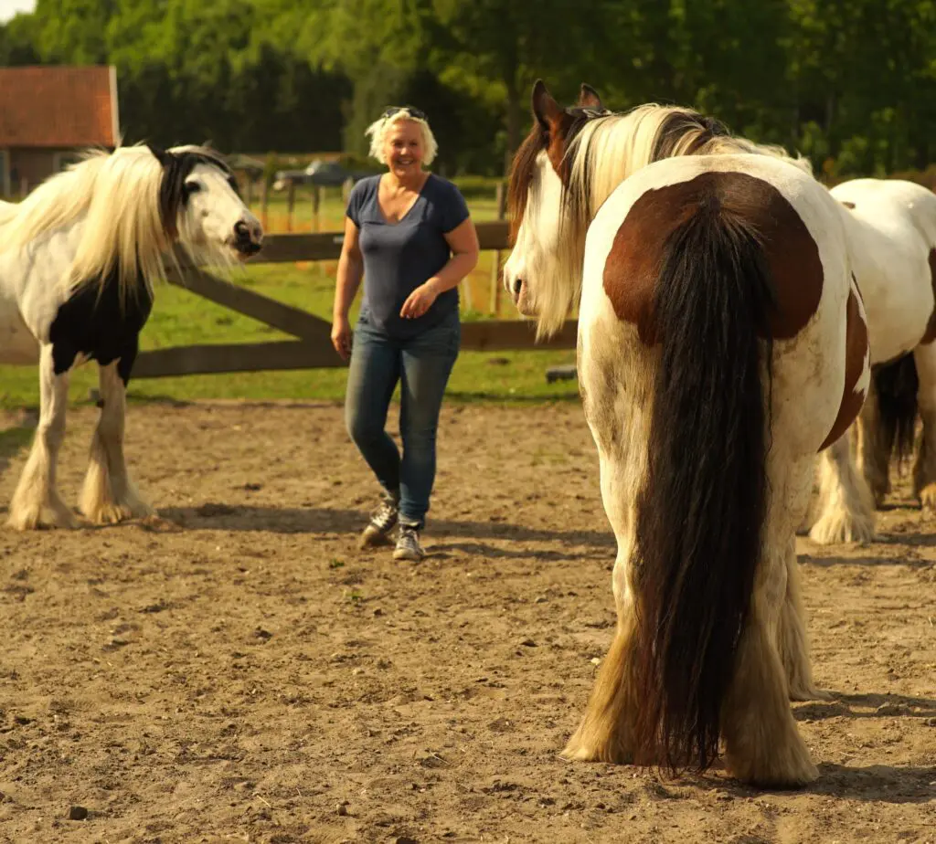 Blijkbaar had het leven iets anders voor me in petto. Ik kwam de paarden tegen op een buitenevenement. Ik liep er recht op af en wat er toen gebeurde, kan ik nog steeds voelen. Kippenvel van top tot teen en ik kreeg tranen in mijn ogen. Wauw, wat gebeurde hier? Dit gevoel was nog groter dan mijn hart volgen. Ze deden iets met me en daar wilde ik meer van weten. Dat is nu 25 jaar geleden. De paarden en ik…. we hebben elkaar niet meer losgelaten.