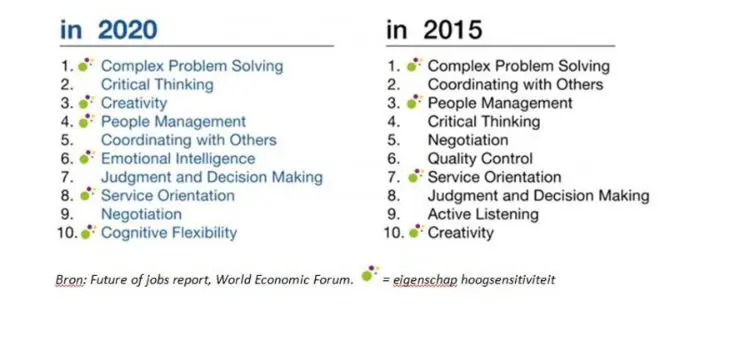 Wist jij dat er voor 2020 een prognose was gesteld aan competenties rop de arbeidsmarkt? Wist jij dat de top 3 competenties thuishoren bij een hoogsensitief persoon op de werkvloer ?